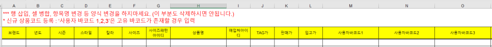 엑셀도 동일합니다!사용자바코드1 자리에 사용할 바코드 혹은 타브랜드 바코드를 입력해주면