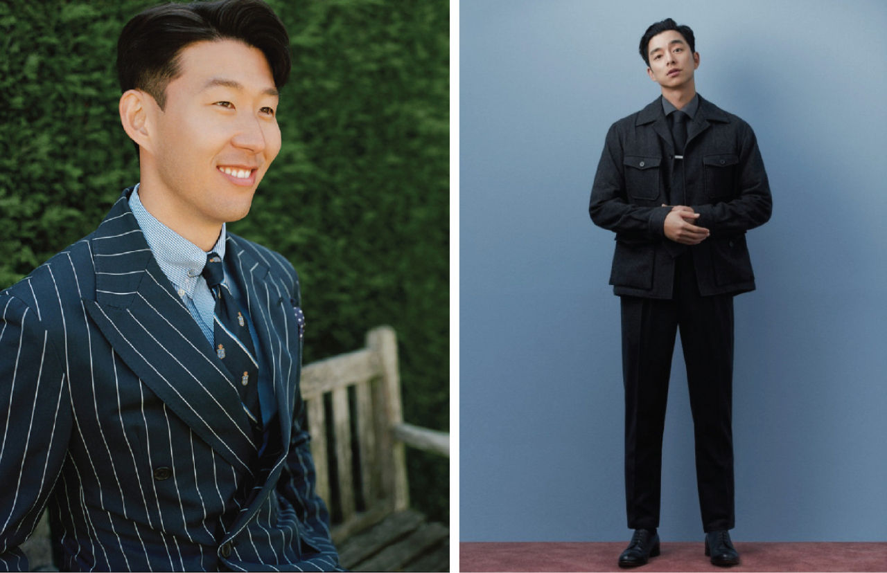 (좌)랄프 로렌 글로벌 캠페인 모델 손흥민, 랄프 로렌 퍼플 라벨을 착용한 앰버서더 공유