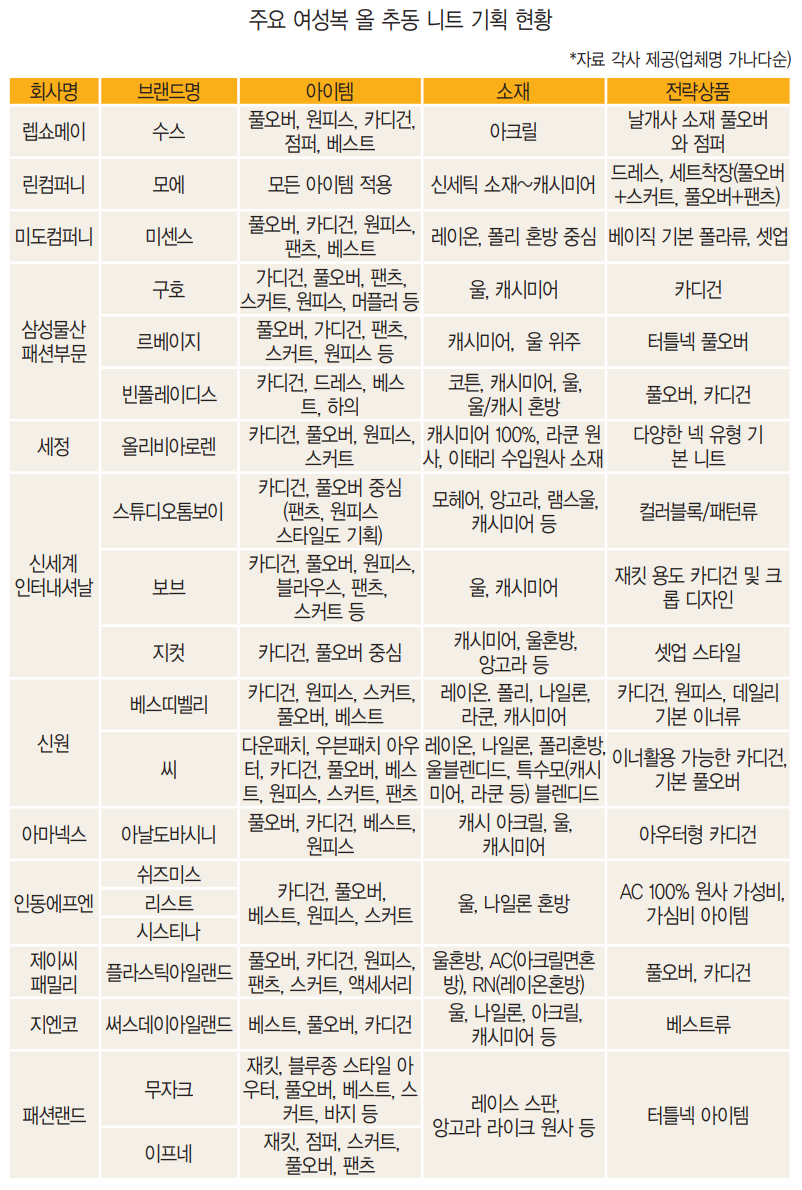 올 추동에도 주력은 ‘니트’