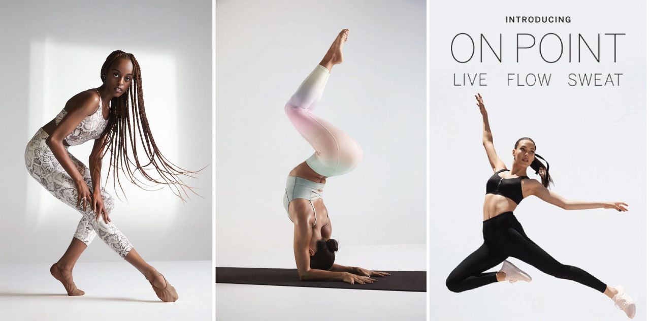 빅토리아 시크릿의 '온 포인트' 컬렉션은 레깅스, 스포츠 브라와 다양한 액티브웨어를 스피닝, 런닝, 복싱 등을 위한 스웨트(Sweat), 일상 생활용을 겸한 라이브(Live), 요가 등을 위한 플로우(Flow)의 3개 카테고리로 나눠 출시한다. 전 세계에 걸쳐 1,400여개 매장을 가지고 있는 것이 '온 포인트'의 강점이다.