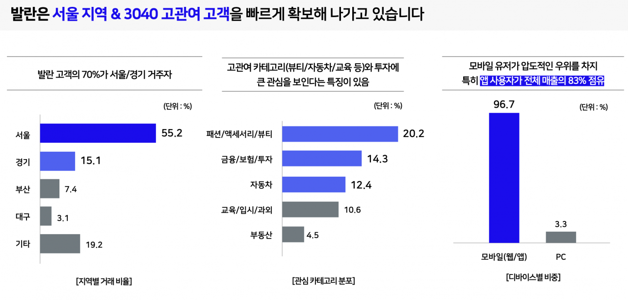 이에 대해 발란의 최형록 대표는 “발란의 주요 고객은 30~44세이며, 구매 비중이 60%에 달한다. 이들은 대부분 단순 명품 쇼핑을 넘어 고관여 럭셔리 라이프스타일 전반에 대해 관심이 높다”고 말했다.