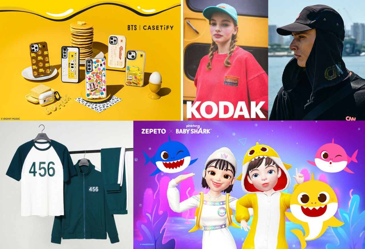 출처=BTS X 케이스티파이, 코닥어패럴, CNN어패럴, 무신사X오징어게임, 아기상어X제페토