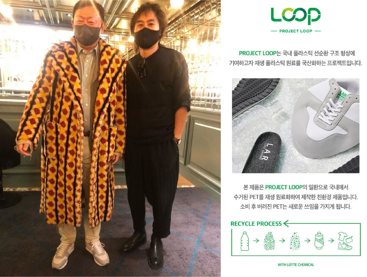 최근 친환경 스니커즈 ‘엘에이알(LAR)'은 롯데그룹 신동빈 회장이 착용해 이슈가 됐다. 배상민 롯데 디자인경영센터장이 한남동 구찌 매장에서 모피코트를 입고 ‘엘에이알’의 운동화를 신은 신동빈 회장 사진을 지난달 공개, 이후 많은 주목을 받았다.