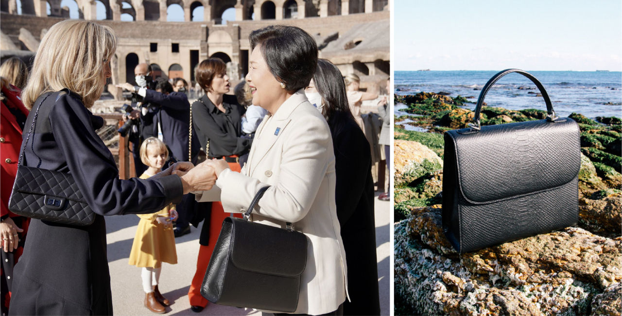 김정숙 여사가 지난 6월 주요 7개국(G7) 정상회의에서 든 ‘쿠론’의 ‘스태파니클래식 31백’도 완판 행진을 기록했다. 해당 제품은 10년 전 모델을 올해 한정판으로 재출시한 제품이다.