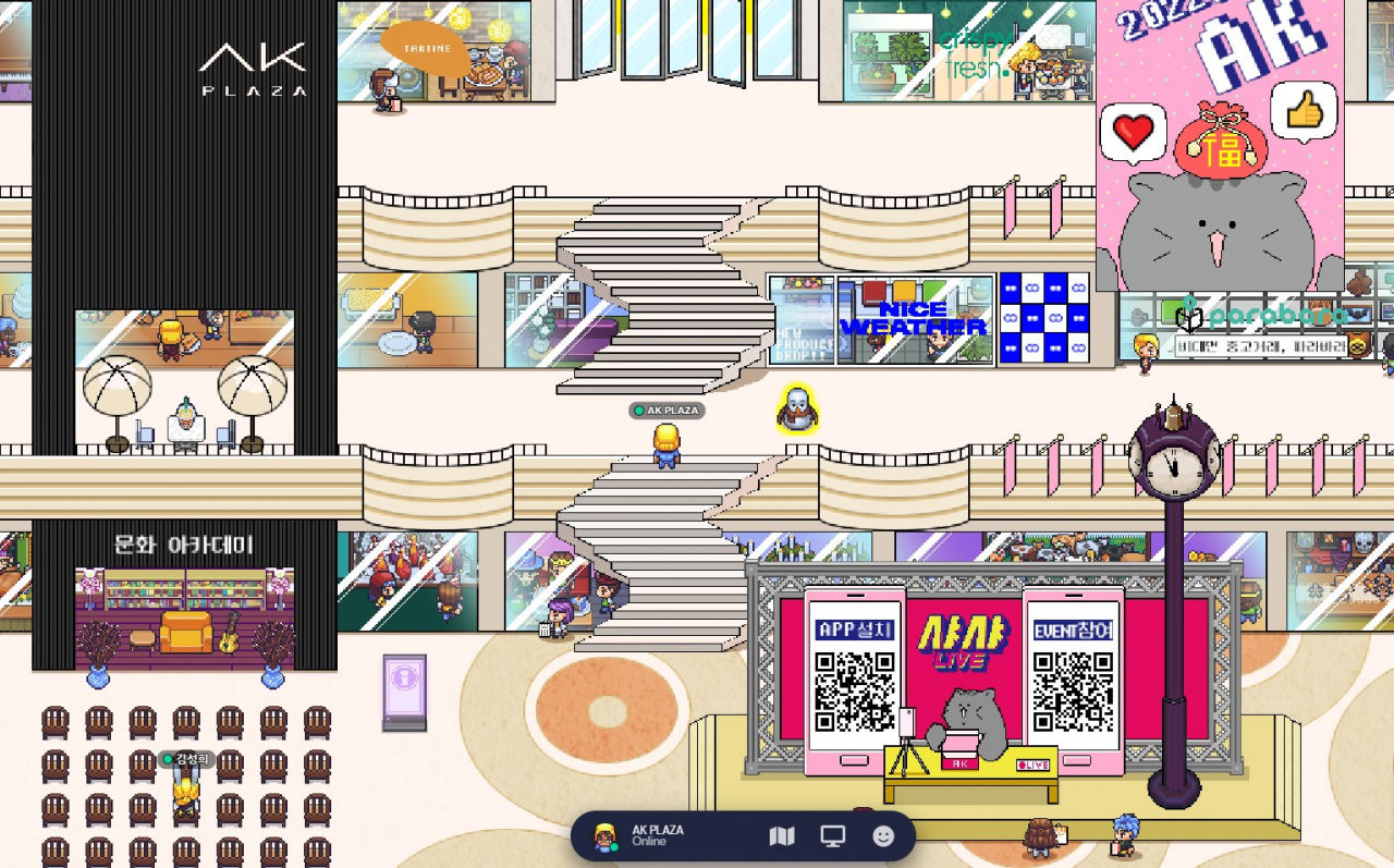 애경그룹은 지난 3일부터 5일까지 게더타운 플랫 폼 내 사옥인 애경타워를 메타버스로 구현, 그룹 신년회를 진행했다. 계열사 특성을 담은 다양한 테마공간을 마련하고 신년 메시지와 다양한 새해 이벤트를 진행했다. AK플라자는 AK메타버스 내에서 한정수량 및 특가상품 판매도 진행했다. 신년회를 계기로 다양한 사내외 행사 및 사업영역에서 AK메타버스 공간을 적극 활용할 계획이다.