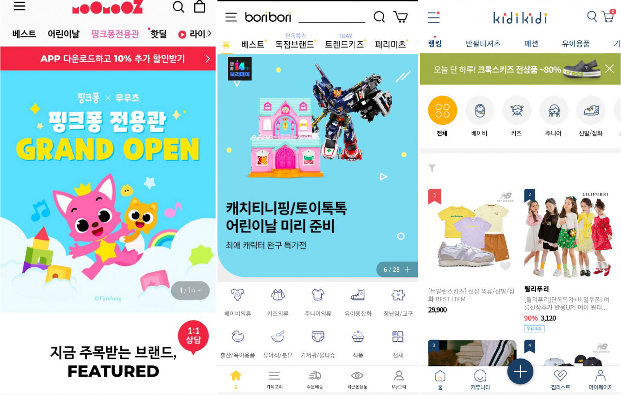 과거 트라이씨클의 ‘보리보리’가 유일했던 유아동 플랫폼 업계에 최근 2년 사이 키디키디, 무무즈, 차일디, 마미 등이 새로 등장했다. 지난해 거래액 2조 원을 돌파한 무신사도 지난 2월 아동 전문관 ‘무신사 키즈’를 런칭했다.