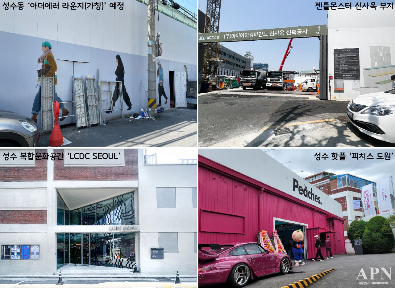 패션 브랜드들의 완공 예정 건물과 성수동 핫플레이스 / 사진=유영준 기자