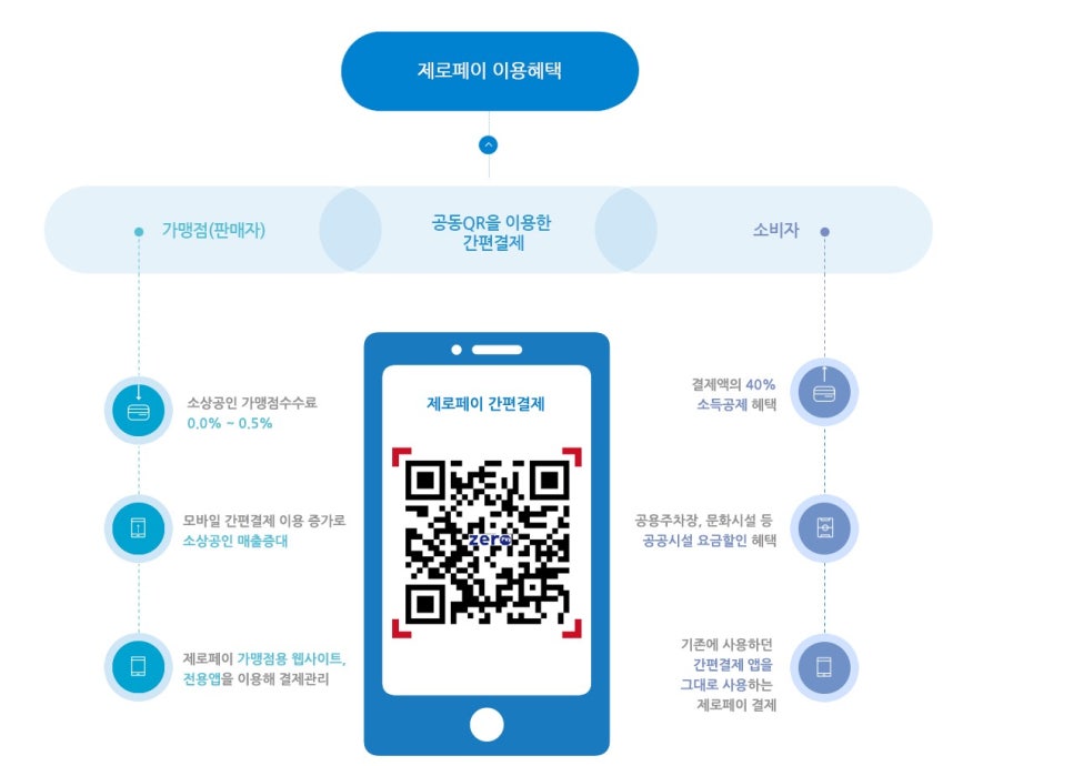 가맹점은 제로페이 결제를 이용해 가맹점수수료 부담을 크게 낮출 수 있으며(전년도 매출 8억원 이파 0%),