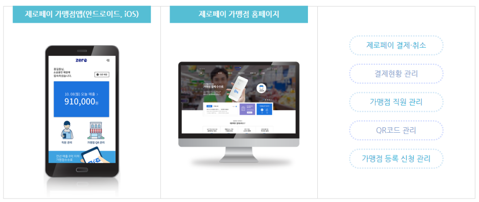 가맹점은 제로페이 웹사이트와 가맹점 전용앱을 이용하여 결제내역을 실시간으로 관리할 수 있고,
