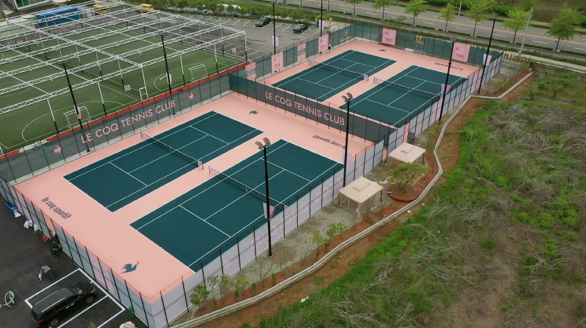‘르꼬끄 스포르티브’는 지난 5월 경기도 김포에 3,636㎡(1,100평) 규모의 브랜드 테니스장 ‘르꼬끄 테니스 클럽’을 업계 최초로 오픈했다. 4면 하드 코트와 편의시설이 조성됐으며, 코트는 ‘르꼬끄’의 아이코닉 심볼과 컬러로 브랜드 아이덴티티가 담겼다. 동호인들을 위한 일반 대관부터 레슨 및 각종 이벤트 공간으로 활용될 예정이다.