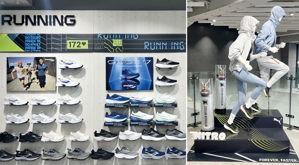 종전 국내 러닝화 스페셜티 스토어(런닝 특화 매장)는 런너스클럽, 플릿 러너, 스타트런 등 정도였다. 여기에 최근 제도권 패션 기업들이 진입을 시작해, 전문가용부터 일반인용 제품까지 구성한 게 특징이다.