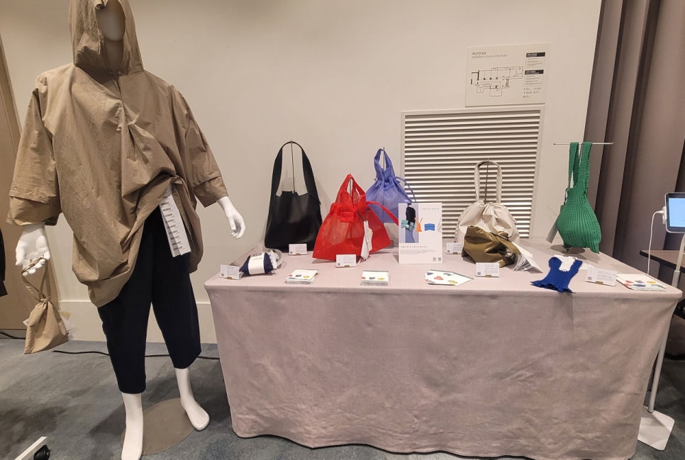 이번 행사에는 기능성 소재 35개, 패션 소재 29개를 전시했고, 자사가 개발한 지속가능 소재로 만든 친환경 가방 ‘메타모노’ 등도 소개했다.