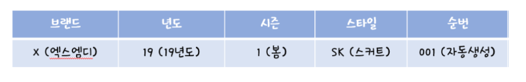 브랜드 년도 시즌 스타일 순번으로 생성 되는게 보이실까요?