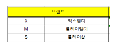 브랜드에 어떤 브랜드들을 사용할지 세부코드들을 입력해줍니다.