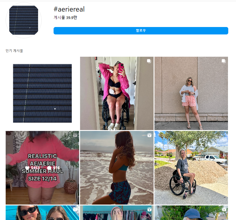 해외에서는 팬데믹 기간 급성장한 속옷 브랜드 ‘에어리’가 UGC를 잘 활용한 예시로 꼽힌다. 비주얼 서비스 제공 업체 비주얼 옵젝트(Visual Objects)에 따르면, ‘에어리’는 자기 몸 긍정주의(바디 포지티브) 주제의 #AerieReal 캠페인을 진행해, 수많은 사람들이 여기에 동참한 게시물을 올리며, 브랜드의 옷을 구매하는 사람들이 늘어나 좋은 성과를 얻었다고 밝혔다.