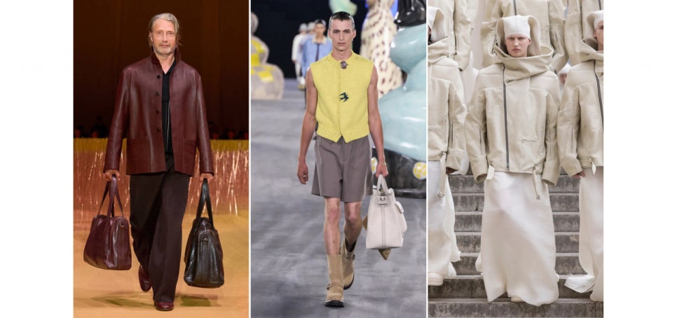 가볍고 경쾌한 아이템으로는 ‘제냐’의 리넨 오버 셔츠, ‘디올’의 테일러드 버뮤다 슈트, ‘르메르’의 릴렉스 슈트와 오버코트, ‘아미리’의 더블 브레스티드 재킷, ‘이세이미야케’와 ‘릭오웬스’의 더스터 코트, ‘더 로우’의 로난 재킷 등이 돋보였다.