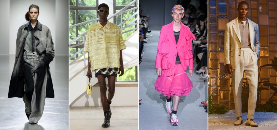 볼륨감은 커졌고, 소재·부자재·색상은 가볍고 경쾌해졌다. 소재는 캐시미어, 실크, 메쉬, 리넨, 시어서커, 색상은 스카이, 베이지 등 뉴트럴 및 파스텔톤이 주로 쓰였다. 여기에 기반한 이브닝웨어가 새롭게 떠올랐고, 지난 몇 년간 이어지고 있는 아웃도어·스포츠웨어까지 융합되며 스포티한 무드도 나타났다.