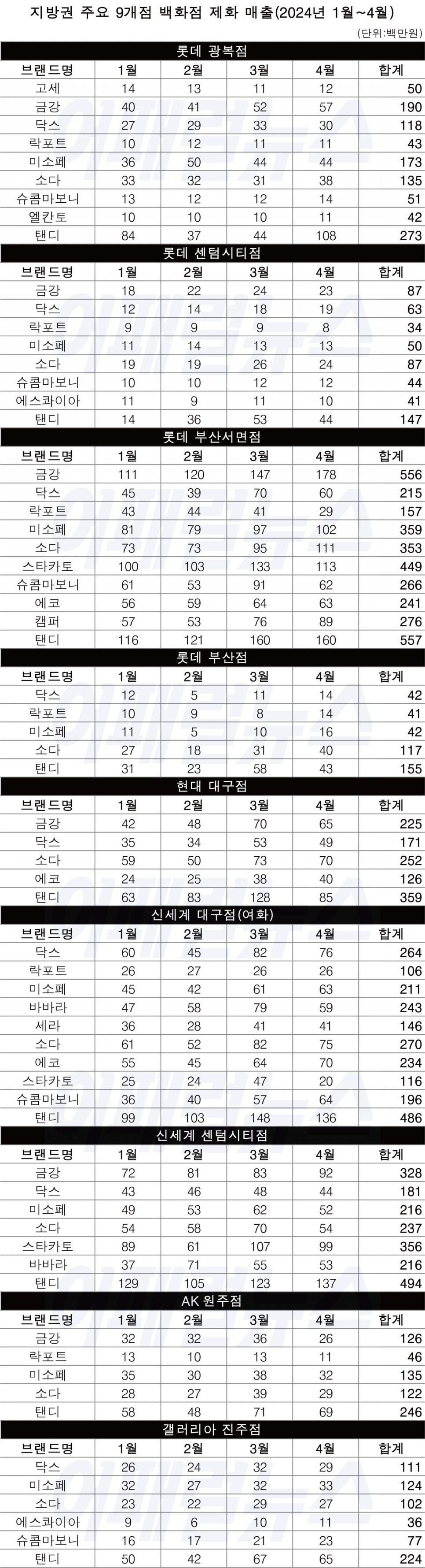 신세계 대구점은 ‘세라’만 전년 대비 보합세를 기록했고, 나머지는 16~42% 이상 역신장했다.