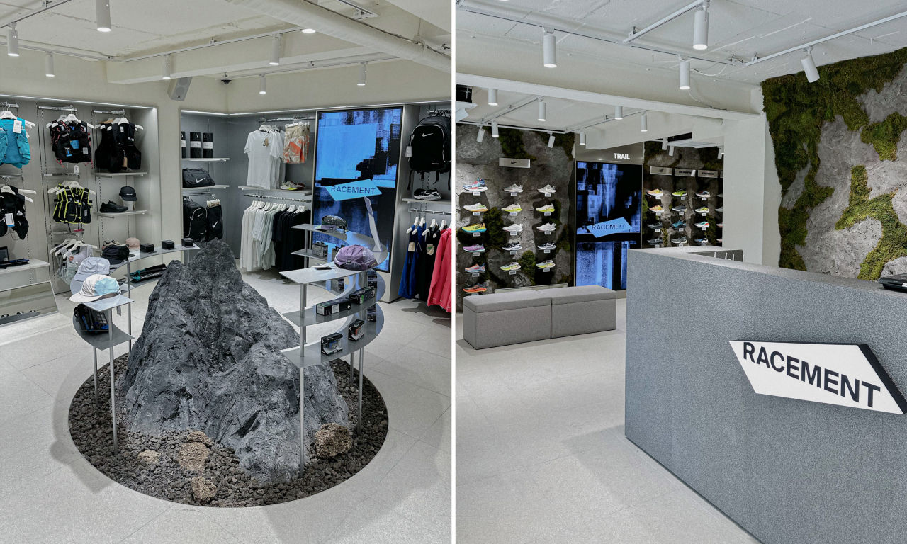 러닝화 브랜드는 나이키, 뉴발란스, 서코니, 브룩스 브라더스, 호카, 모스포츠 등을, 트레일화 조닝은 캠퍼의 ‘노말’, 스카르파, 살로몬, 알트라 등을 구성했다. 액세서리는 선글라스 라이다, 블랙다이아몬드, ARC 등이 입점돼 있다.