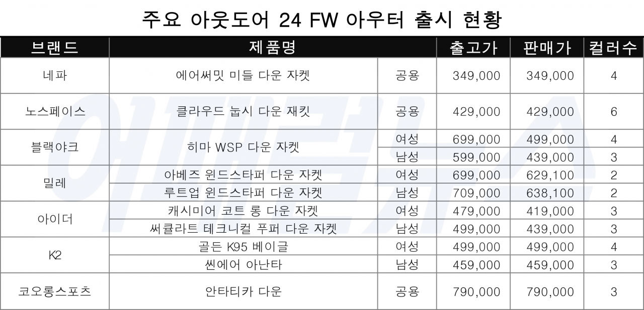 아웃도어 겨울 주력 아우터 판촉 경쟁