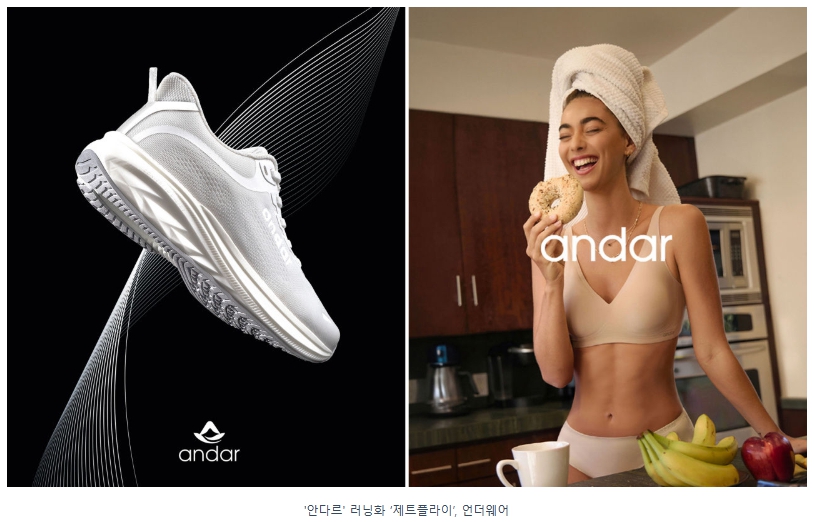 ‘안다르’는 전통적으로 강세인 요가, 필라테스, 짐웨어 등 주력 아이템 외에 골프웨어, 러닝, 언더웨어, 러닝화, 가방, 액세서리 및 홈트용품 등을 출시했다. 그중 이번에 시작한 언더웨어가 큰 인기를 누리고 있다. 여성용 올데이핏, 쿨어웨이크 브라 캐미솔, 안다르 맨즈 심리스 드로즈, 주니어용 심리스 속옷 등 총 8종의 언더웨어 제품을 선보였다.