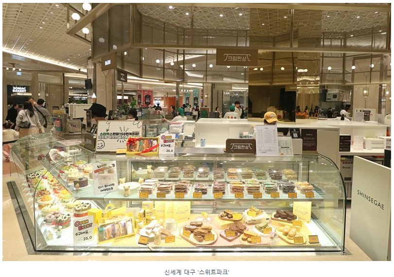 신세계 대구는 지난 7월 말 900평 규모의 ‘스위트파크’를 오픈했다. 벨기에 프리미엄 초콜릿 ‘피에르 마크콜리니’, 일본 밀푀유 디저트 ‘가리게트’, 압구정 추로스 맛집 ‘미뉴트빠삐용’ 등이 지역 백화점 최초로 들어섰다.