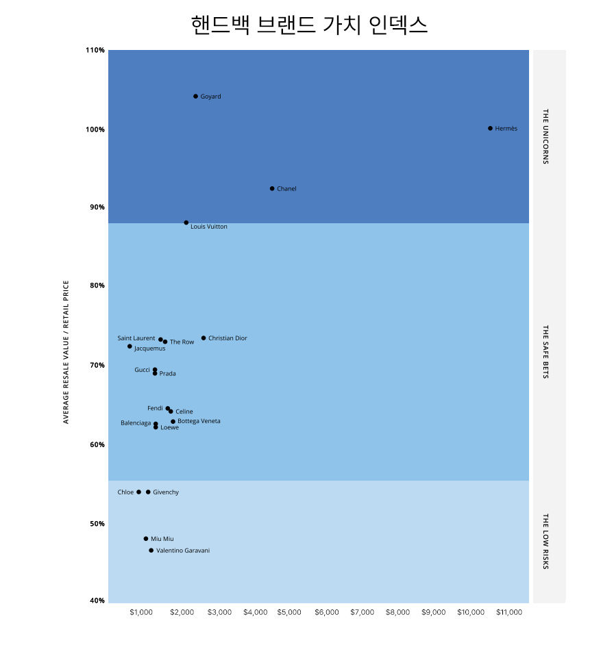 고야드 가치 유지율 104%로 에르메스 추월, 샤넬 92%, 루이비통 88%