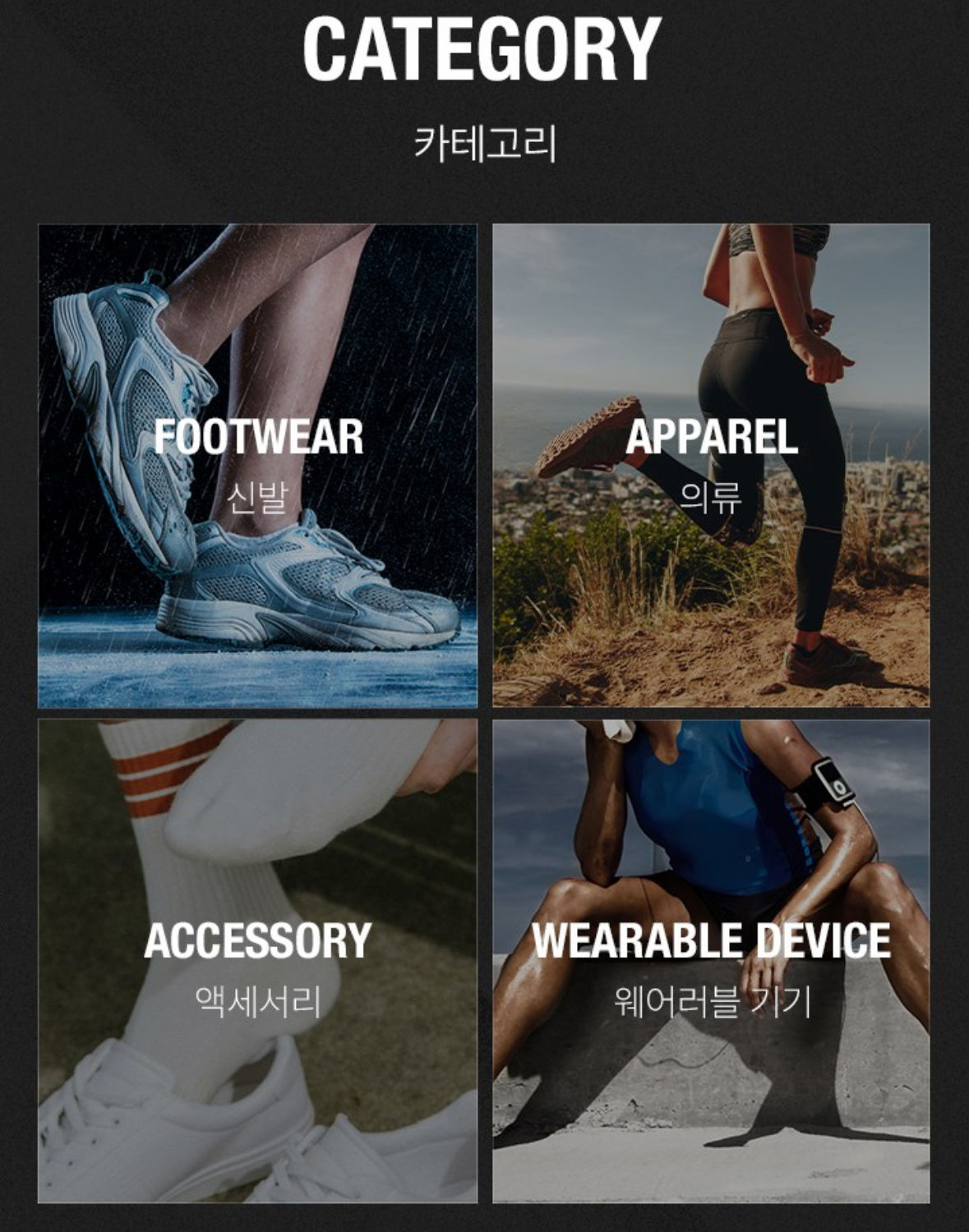 롯데온은 스포츠 카테고리 내 종목별로 10개 분야를 세분화했는데, 그중 러닝 섹션을 만들어 운영하기 시작했다. 스포츠 카테고리 내 등산, 요가, 수영, 자전거, 축구(농구, 야구) 등으로 구성돼 있다. 이외 무신사는 스니커즈 전문관 내 ‘호카’ 등 러닝화 브랜드 유치를 강화하고 있다.