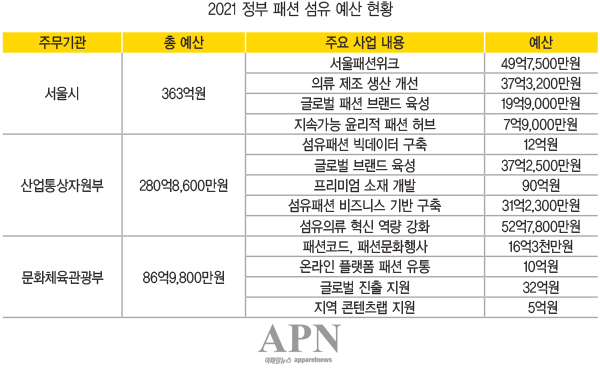 올해 산업통상자원부는 패션산업 활성화, 섬유의류 혁신역량 강화 산업 분야에 총 280억8,600만 원의 예산을 책정했다.