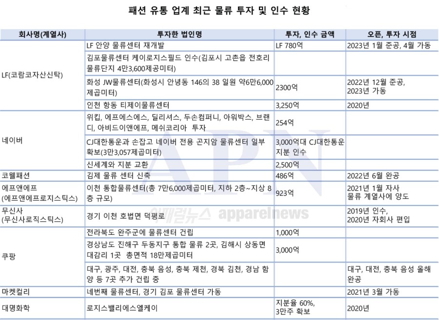 [어패럴뉴스 박해영 기자] 패션 유통 업계가 물류 인프라 강화에 팔을 걷어 붙였다.