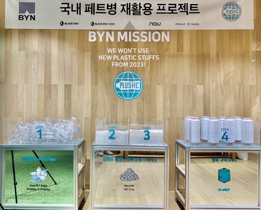 블랙야크는 친환경 소재 활용에 앞서 국내에서 버려지는 페트병의 선순환 구조 확보를 위해 지자체, 기업들과 적극적인 협력 체계를 구축하고 있다.