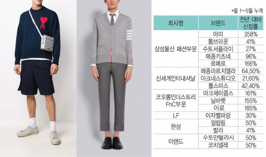 (왼쪽부터) 아미, 톰브라운, 패션 대형사 주요 수입 브랜드 신장률 현황