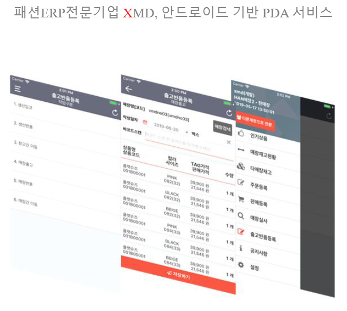 [어패럴뉴스 오경천 기자] 패션의류 ERP&POS 전문기업 엑스엠디(대표 김형근, 이은준)가 7월 1일부터 기존 임베디드 기반의 PDA에서 안드로이드 기반의 PDA 서비스를 시작한다.