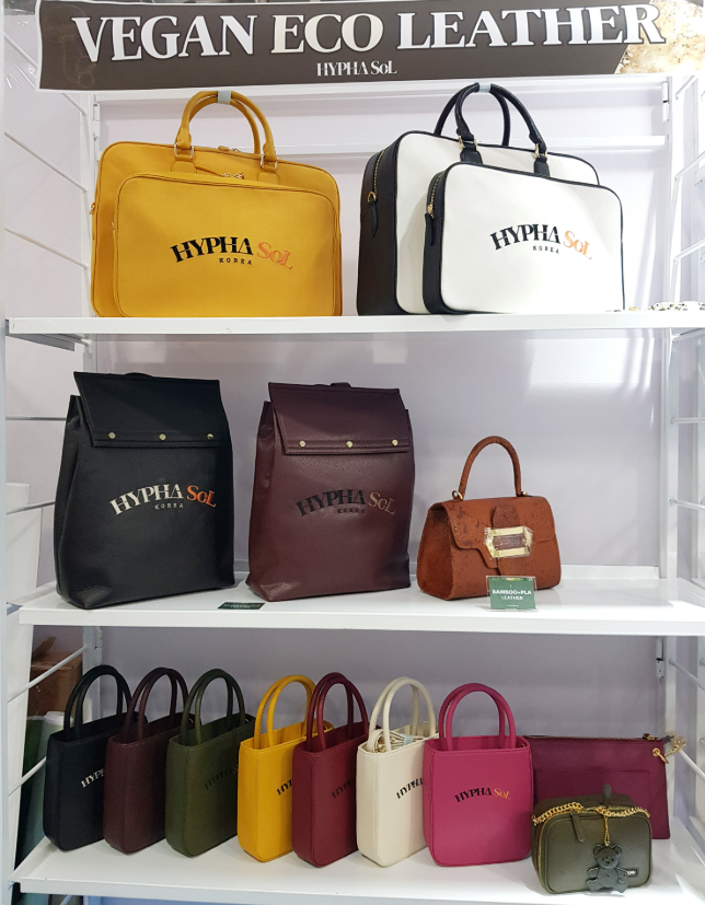 에콜그린텍이 개발에 성공한 버섯 가죽 ‘하이파솔(HYPHA SoL)’은 기존 비건 가죽 대비, 인장 및 인열 강도를 2배 이상 향상시켰고, 3만 회 이상의 내마모성을 보유하고 있다. ‘하이파솔’은 버섯 균사체 유기물을 분해시켜 만드는데 자연 패턴을 완성한 게 특징이다. 글로벌 패션, 소재, 자동차 전시회에 출품, 거래처를 공격적으로 늘리고 있다.