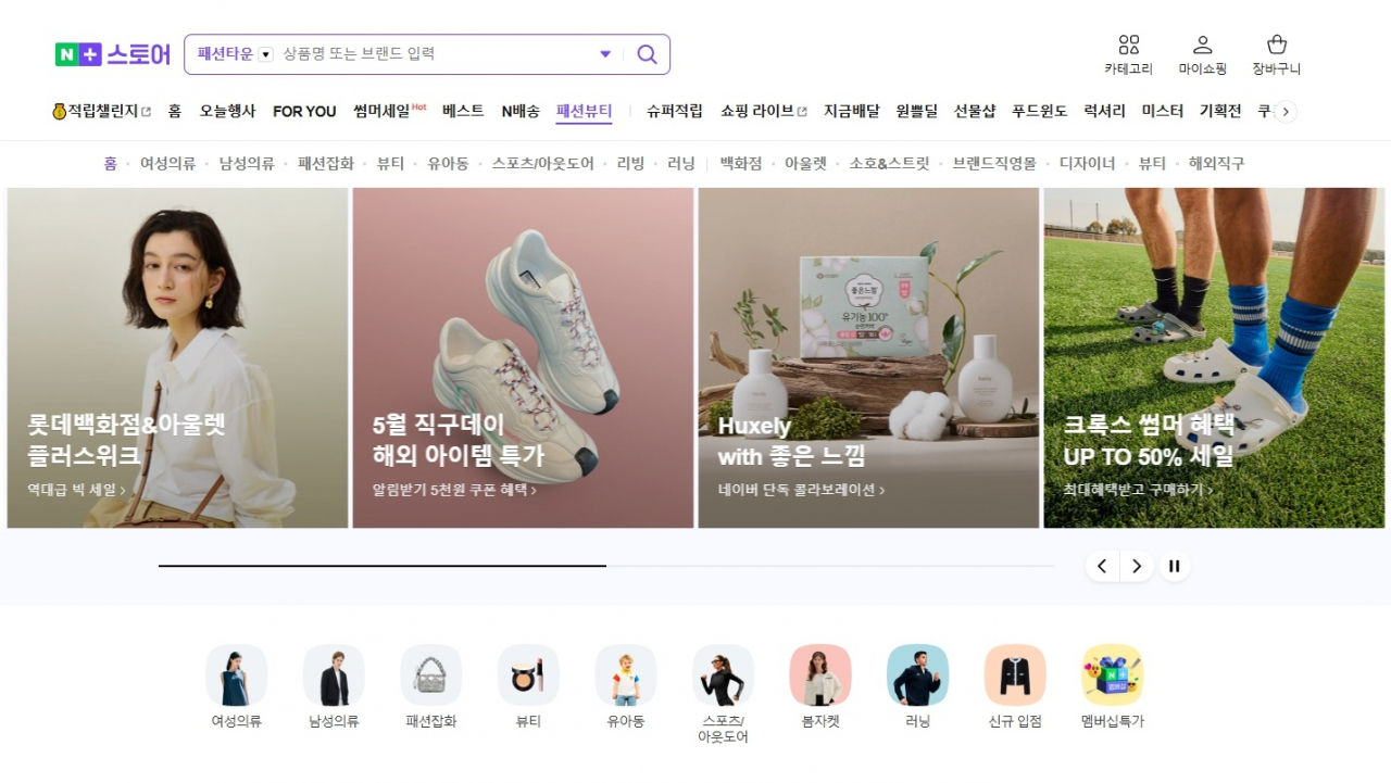 이 가운데 패션의 경우 네이버플러스 스토어의 패션뷰티 카테고리안 백화점, 아울렛, 해외직구, 소호&스트릿, 브랜드, 디자이너, 미스터, 럭셔리 등으로 운영되고 있다.