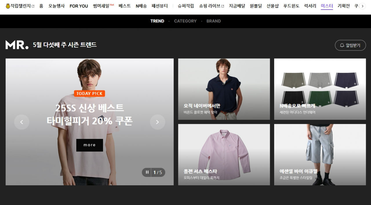 또 다른 패션관 미스터는 남성 전문 패션 플랫폼이다. 2021년 런칭해 20~40대 남성을 위한 다양한 컨텐츠를 내세우며 경쟁력 제고에 나서고 있다.