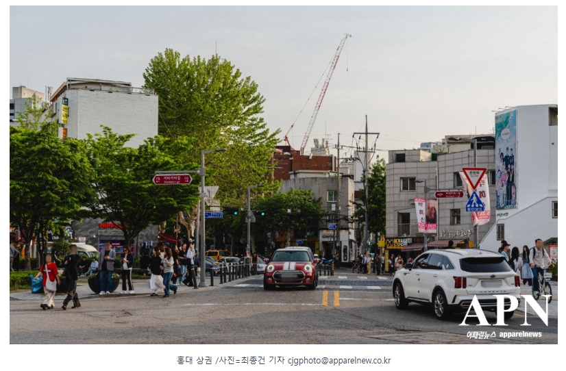 영패션 브랜드들의 플래그십 스토어가 즐비한 서교동 골목에는 공실이 제로에 가깝다. 이곳에 매장 개설을 위해 대기 중인 브랜드도 여럿이다. ‘헉슬리 쇼룸’이 철수한 자리도 바로 새로운 브랜드가 임대 계약을 체결하고 현재 공사를 진행 중이다. ‘젠틀몬스터’, ‘프라이탁’이 있는 골목 공실도 임대 계약이 완료됐다.